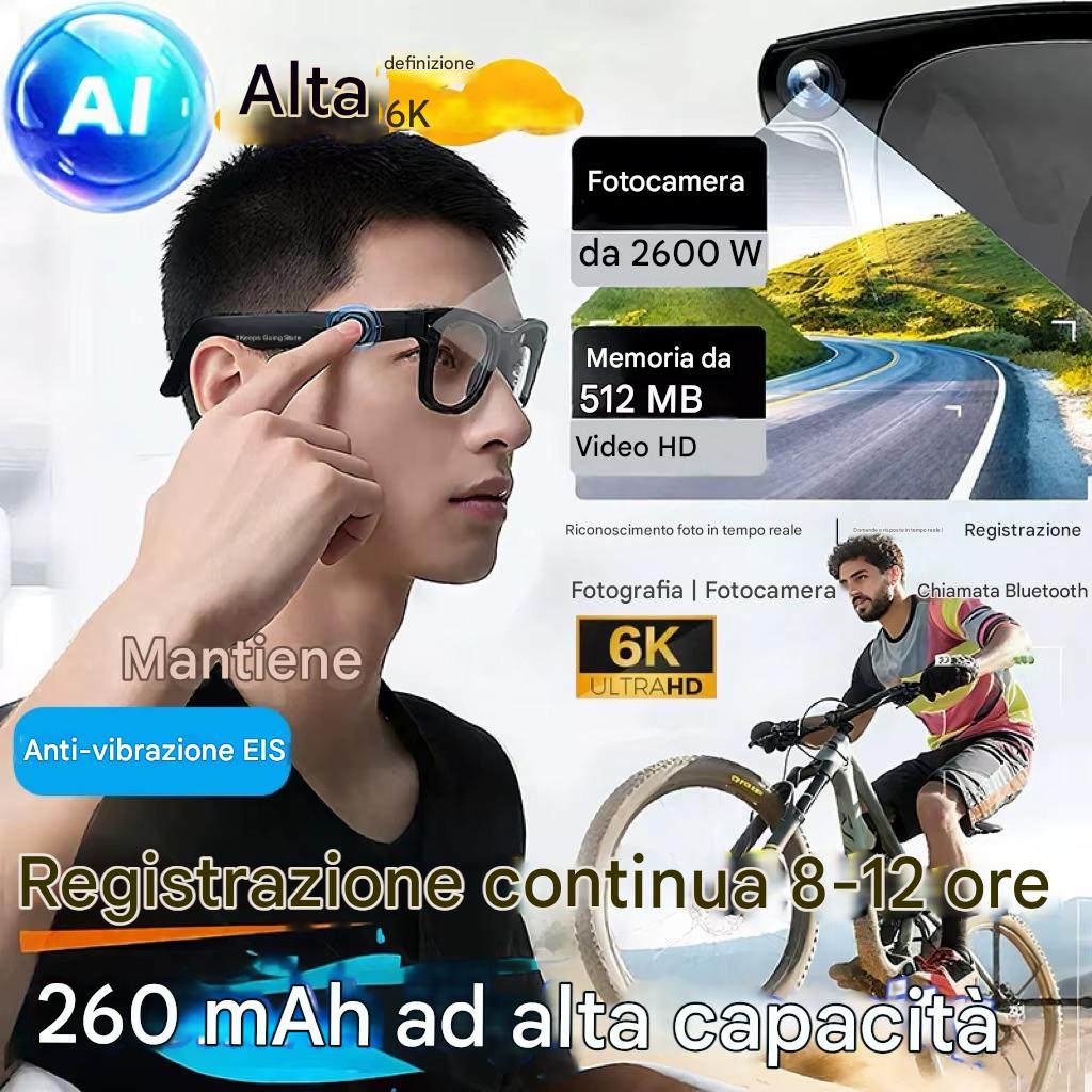 Occhiali Smart AI con Traduttore Vocale e Fotocamera